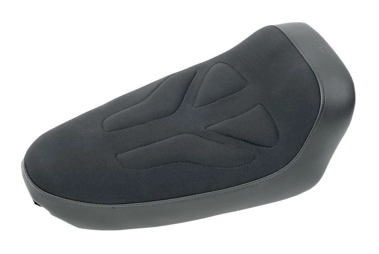 - Tech style seat features flexible fabric cover that breathes well over concealed gel channel and a layer of memory foam that conforms to shape of rider