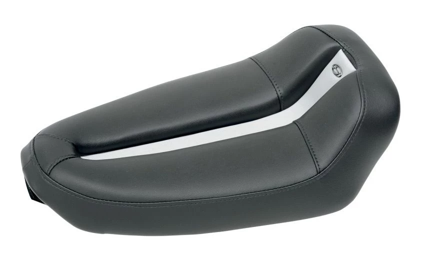 - Track style seat features hard-line custom styling with supple SaddleHyde and a contrasting silver center channel