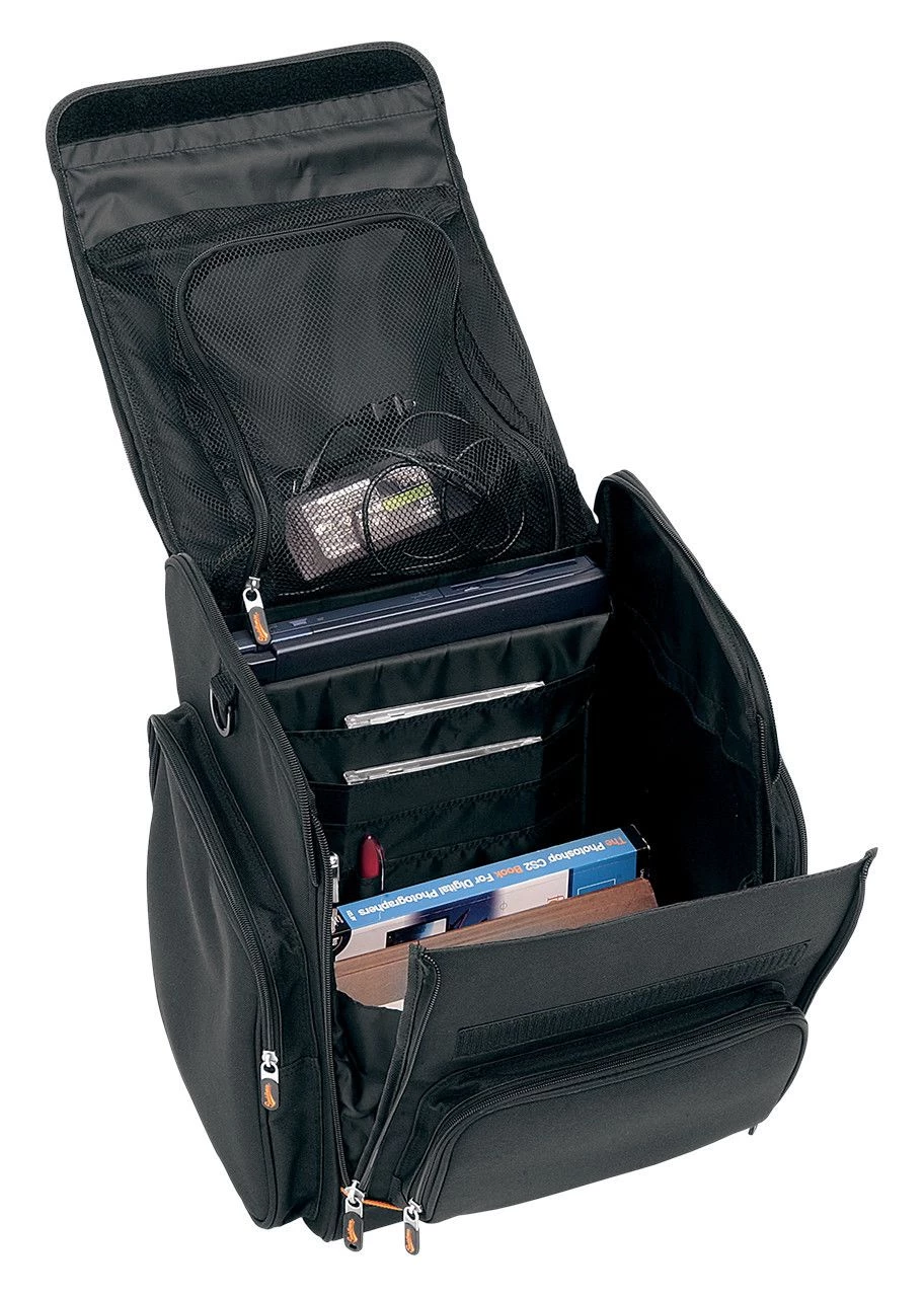 - Zip/hook-and-loop wide top opening with gusseted zip front